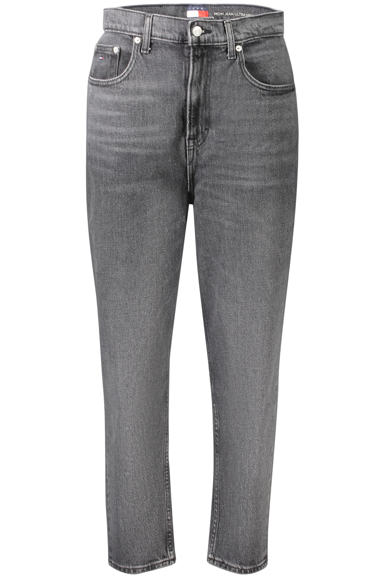 Ultra High Tapered Mom Jeans, 5 Pockets, Washed Effect, Button, Zip, Logo